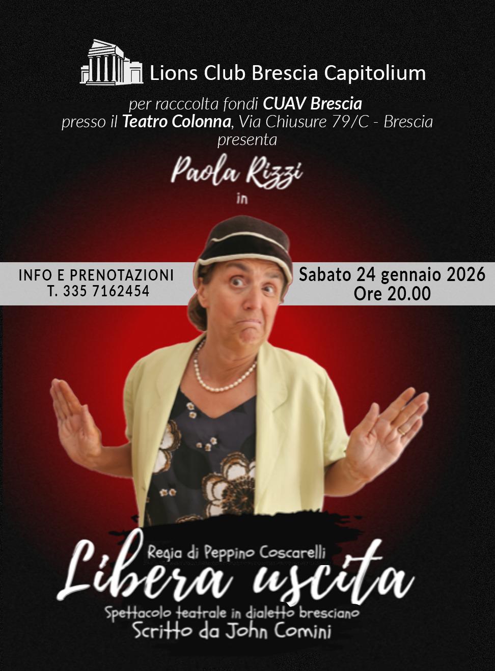 Brescia, il 24 gennaio "Libera uscita" con Paola Rizzi a favore del CUAV